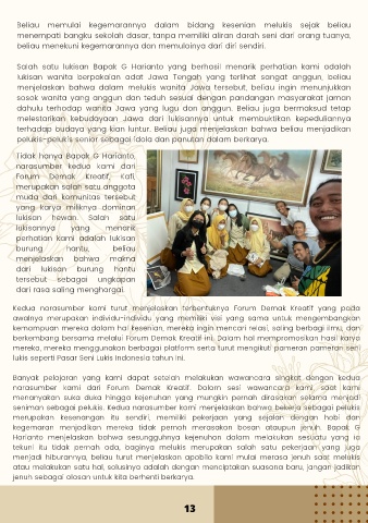 seniman sebagai pelukis. Kedua narasumber kami menjelaskan bahwa bekerja sebagai pelukis