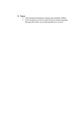 B. Tujuan 1. Untuk mengamati mekanisme transpor pada membrane (Difusi) 2. Untuk mengamati sel osmosis pada kentang dan dapat mengetahui beberapa faktor-faktor yang mempengaruhi proses osmosis.