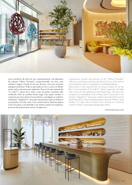 e restaurante sob a insígnia LV. and restaurant under the LV insignia. The avant-garde building was “Le Café V”, aberto dia e noite e com um menu concebido pelo with a menu by the well-known chef Yosuke Suga. The space also