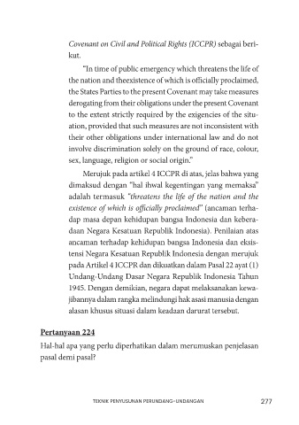 pada Artikel 4 ICCPR dan dikuatkan dalam Pasal 22 ayat (1)