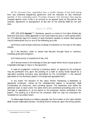 ART. 229. [223] Appeal. 173 Decisions, awards, or orders of the Labor Arbiter are