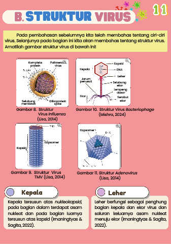Kepala tersusun atas nukleokapsid, Leher berfungsi sebagai penghung
