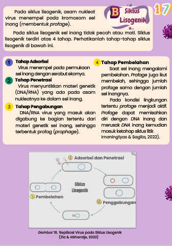 lisogenik terdiri atas 4 tahap. Perhatikanlah tahap-tahap siklus