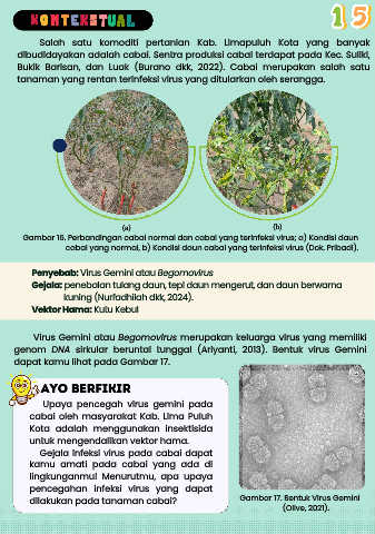 Gambar 16. Perbandingan cabai normal dan cabai yang terinfeksi virus; a) Kondisi daun