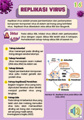 virus. Replikasi virus dibedakan atas siklus litik dan lisogenik.