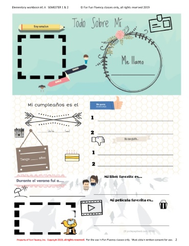 Elementary workbook #1 A SEMESTER 1 & 2 © For Fun Fluency classes only, all rights reserved 2019 Property of Fun Fluency, Inc. Copyright 2019, all rights reserved. For the use in Fun Fluency classes only. Must obtain written consent for use. 2