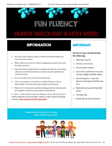 Property of Fun Fluency, Inc. Copyright 2019, all rights reserved. For the use in Fun Fluency classes only. Must obtain written consent for use. 35