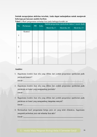 Tabel 1. Hasil pengamatan terhadap ikan pada berbagai kondisi air