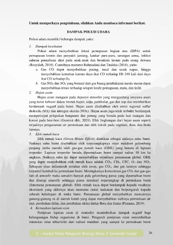 (fenomena pemanasan global). Efek rumah kaca dapat berdampak kepada rusaknya