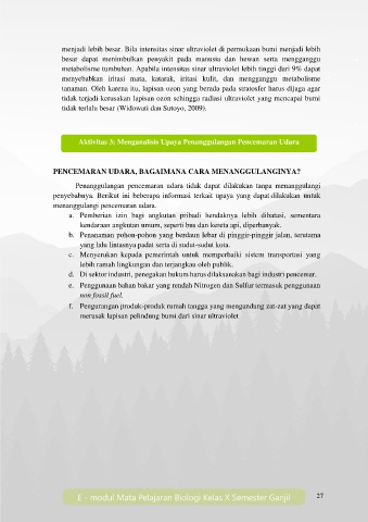 metabolisme tumbuhan. Apabila intensitas sinar ultraviolet lebih tinggi dari 9% dapat