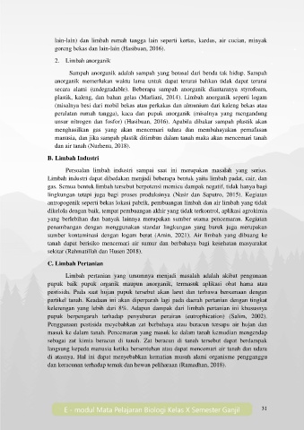 peralatan rumah tangga), kaca dan pupuk anorganik (misalnya yang mengandung