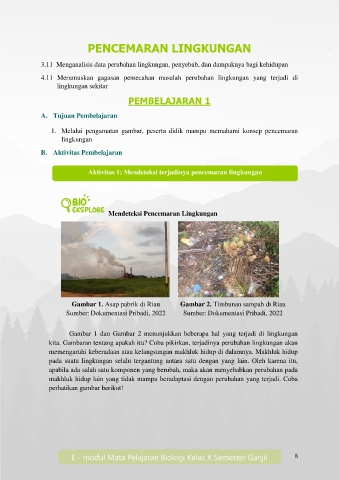 1. Melalui pengamatan gambar, peserta didik mampu memahami konsep pencemaran