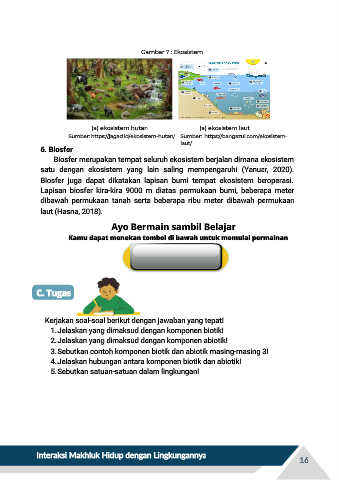 3. Sebutkan contoh komponen biotik dan abiotik masing-masing 3!