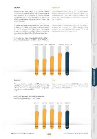 19.598.249 MMBTu. Pemakaian gas pada tahun 2019 use of gas in 2019 consists of use for own plants and