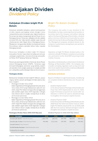 Berdasarkan kebijakan dividen bright PLN Batam, secara Based on PLN Batam’s bright dividend policy, the following