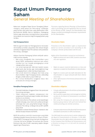 Adapun hak-hak Pemegang Saham meliputi namun Rights of the Shareholders include but not limited to: