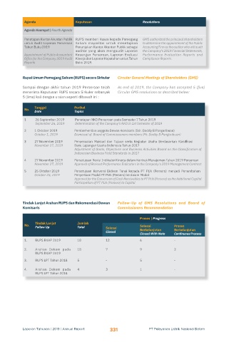 Tindak Lanjut Arahan RUPS dan Rekomendasi Dewan Follow-Up of GMS Resolutions and Board of