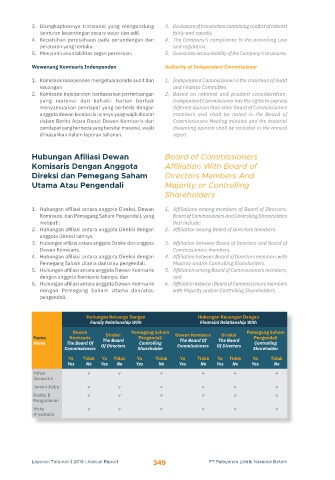 5. Hubungan afiliasi antara anggota Dewan Komisaris 5. Affiliation among Board of Commissioners members;