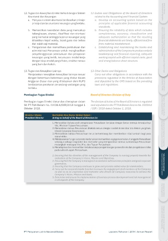 Pembagian Tugas Direksi Board of Directors Division of Duty