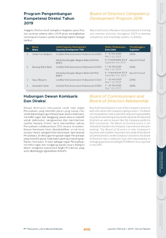 Anggota Direksi telah mengikuti kegiatan pelatihan Board of Directors Members had participated in training