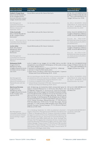 Risk Management Can be seen in Board of Commissioners profile section BATAM/2018 dated December
