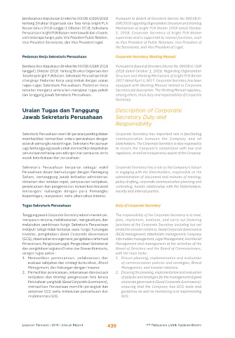dan tanggung jawab Sekretaris Perusahaan. among others, main duty and responsibility of Corporate