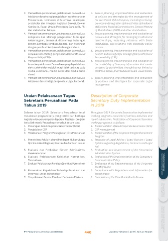 Selama tahun 2019, Sekretaris Perusahaan telah Throughout 2019, Corporate Secretary has implemented