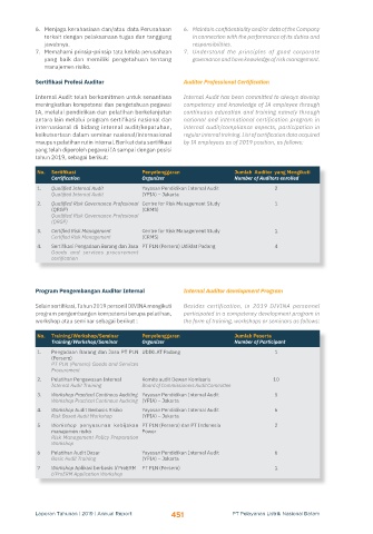 maupun pelatihan rutin internal. Berikut data sertifikasi by IA employees as of 2019 position, as follows: