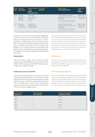 Tahun Akuntan Kantor Akuntan Fee Audit Audit Lainnya Opini Audit Performance Highlights Ikhtisar Kinerja