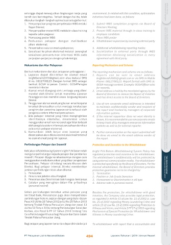 Direksi. Bagi pelapor internal, Direksi memberikan internal whistleblower, the Board of Directors provides Good Corporate Governance Tata Kelola Perusahaan