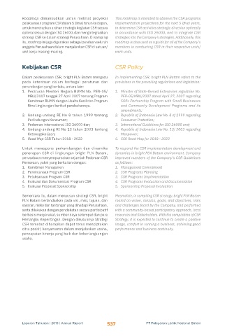 strategi CSR ke dalam strategi Perusahaan. Di samping strategies into the Company’s strategies. Additionally, this