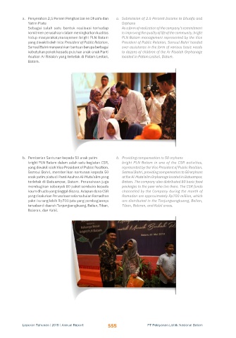 kaum dhuafa yang tinggal disana. Adapun dana CSR channeled by the Company during the month of