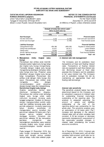 Pada tanggal 31 Desember 2019, jika As of December 31, 2019, if interest rate