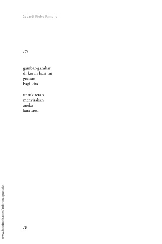 Sapardi Djoko Damono /7/ gambar-gambar di koran hari ini godaan bagi kita untuk tetap menyisakan aneka kata seru www.facebook.com/indonesiapustaka 78