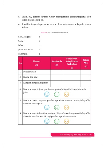 d.  Selain itu, berikan catatan untuk memperbaiki   poster/infograi  atau