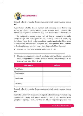 2. Menurut pendapat kalian, apakah teks di atas sudah melibatkan pancaindra