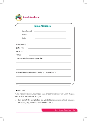 Selain Jurnal Membaca, kalian juga akan mencari kosakata baru dalam Catatan