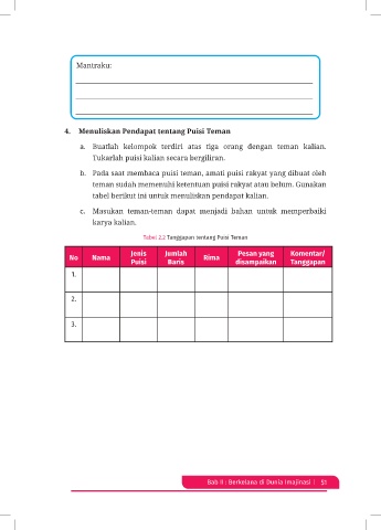 b. Pada saat membaca puisi teman, amati puisi rakyat yang dibuat oleh