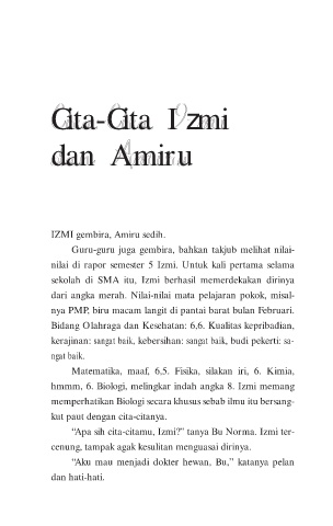 “Apa sih cita-citamu, Izmi?” tanya Bu Norma. Izmi ter-
