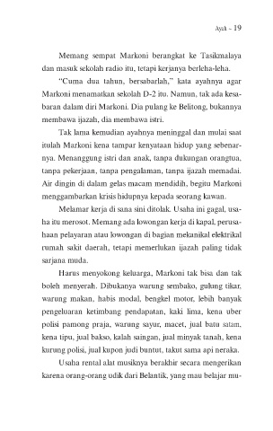 baran dalam diri Markoni. Dia pulang ke Belitong, bukannya