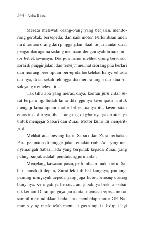 tak keruan. Di sampingnya, juru antar memacu sepeda motor