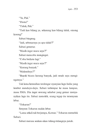 nyikan lagu itu. Sabari menoleh, orang tegap itu tersenyum