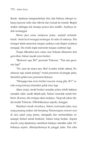 “Berhenti saja, Ri!” perintah Toharun. “Tak ada guna-