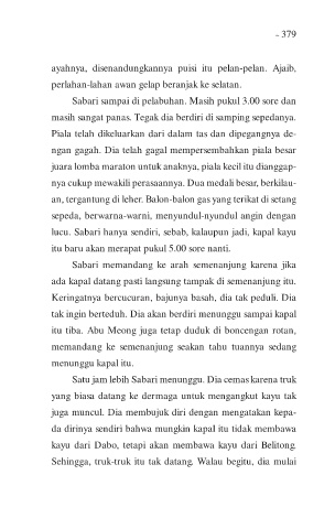 Sabari sampai di pelabuhan. Masih pukul 3.00 sore dan