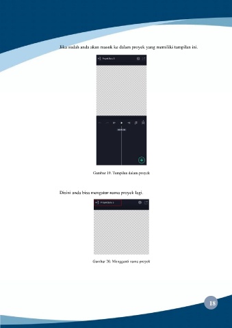 Jika sudah anda akan masuk ke dalam proyek yang memiliki tampilan ini. Gambar 19. Tampilan dalam proyek Disini anda bisa mengatur nama proyek lagi. Gambar 20. Mengganti nama proyek 18