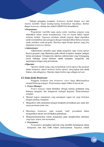 Sebagai pengguna komputer, brainware disebut dengan user dan