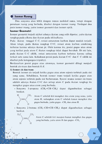jenis isomer ruang, yaitu isomer geometri dan isomer optik.