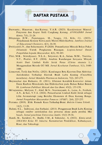 Dwitiyanti1,N., dan Suharmanto, P.(2020). Pemanfaatan Minyak Bekas Pakai