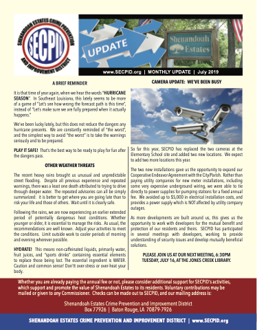 Shenandoah Estates Crime Prevention and Improvement District Box 77926 | Baton Rouge, LA 70879-7926