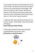 1. When the other bees told the one that got the "lot of nectar" flower, "Good Flying!", what was that type of Thinking?